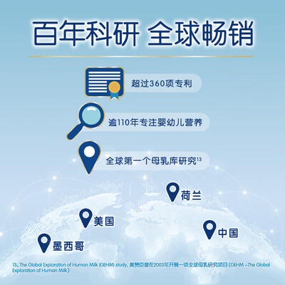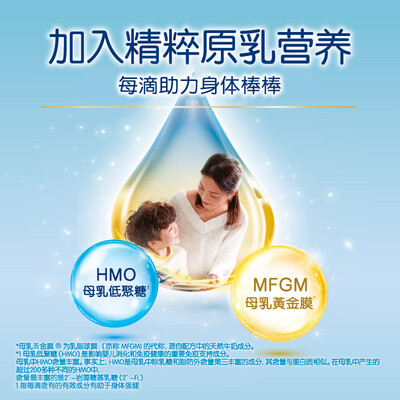 美赞臣HMO婴幼儿配方奶粉,特别添加原乳黄金膜MFGM,帮助活跃小脑袋,让宝宝释放早期潜能。不添加蔗糖,奶味纯正放心喝。