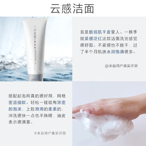 绵密的泡沫,轻盈细腻,深层清洁毛孔污垢,拒绝油腻感。天然植萃成分,温和滋养肌肤,呵护敏感肌,保持嫩滑。