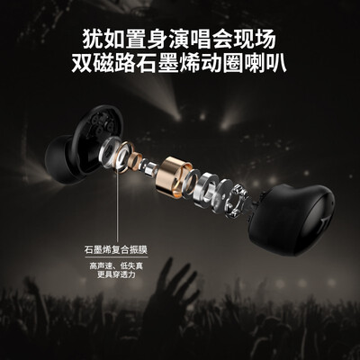 猫眼宝石的造型设计,外观小巧轻盈,佩戴舒适稳固不易滑落。搭载双磁路石墨烯材质的动圈单元,拥有透澈纯净的音质效果。