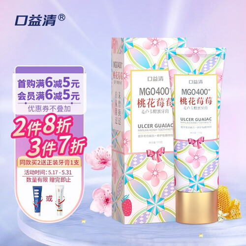 蕴含高纯度麦卢卡蜂蜜,可提升口腔自愈力,修护粘膜受损,同时坚固牙齿,呵护牙龈健康,减少牙釉质损伤。