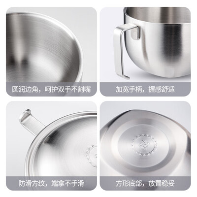 本款设有防滑凹痕,防止脱手打滑烫伤,激光焊点加宽手柄,不易脱落。拉丝抛光工艺,不易刮花,耐磨耐用。