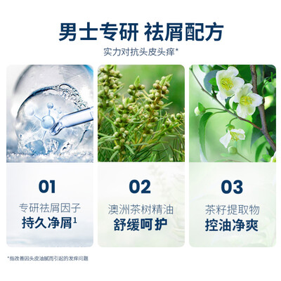 专为男士设计的简约酒壶瓶身,便于抓握,优雅美观。6重护理,多方位平衡水油,补充营养,让头皮呈现年轻态。