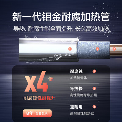 新一代钼金耐腐加热管,升温快速,耐高温不易断,使用寿命长久。智能预约,自由设定洗浴时间,热水无需久等,方便省心。