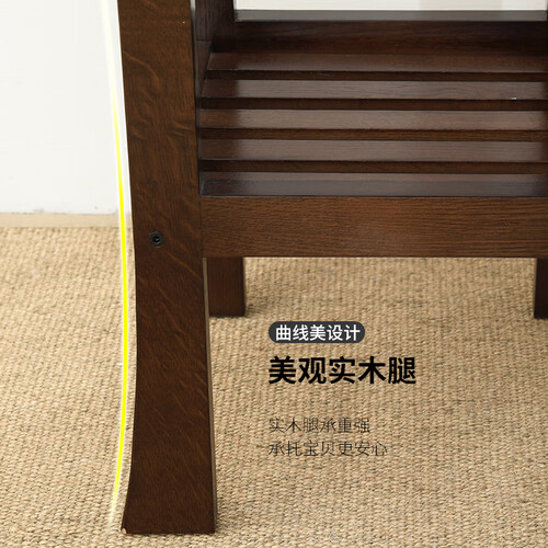 实木打造,简约设计,纹理清晰,美观实用;开放式环保喷涂,宝宝孕妈可放心使用;采用传统榫卯结构,无需安装更牢固。