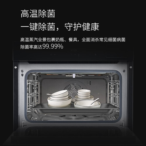 具备高温除菌功能,除菌率高达99.99%,以及自动烘干、催化净化功能及一体成型内腔设计,四重自清洁让餐具始终保持洁净。
