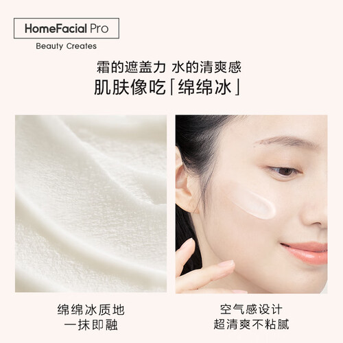 面霜呈冰沙清爽感,绵柔质地易推开,一抹即融,不粘腻。玻尿酸成分帮助肌肤快速补水,滋润肌肤,使妆容更服帖。