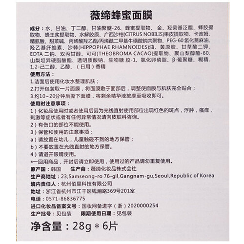 膜布由植物纤维成分组成,上脸使用更清透。添加蜂蜜成分,细致滋养面部皮肤。更有含金量,能够帮助营养成分的吸收。