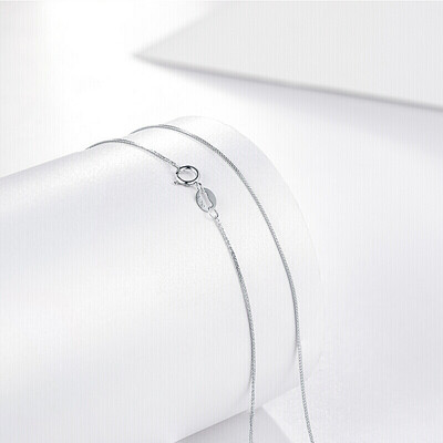项链采用了18K金制作,质地更加稳定,长期佩戴也不会变形。时尚的银色风格,色泽莹亮,衬托出白皙细腻的肌肤。