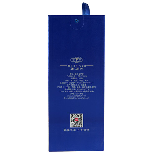 这款白酒的前味窖香浓郁,中味纯正的清香,后味酱香幽雅细腻,空杯留香。酿造工艺复杂,且需要长时间储存,最终形成独特芝香。
