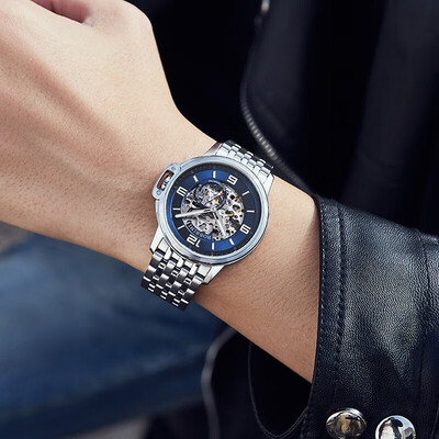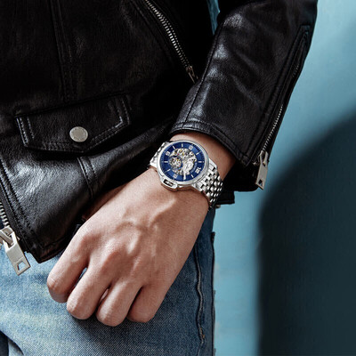 手表配备两种材质的表带,可以根据需要替换搭配,能满足不同场合下的需求。双面镂空表盘个性独特,可以呈现出机械的美感。