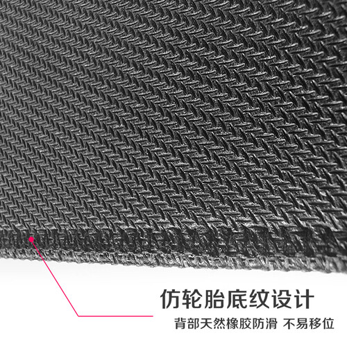 V字多重锁边结合高密度包边工艺,有效防止翘边,更加经久耐用。仿轮胎底纹设计,牢牢贴合桌面不易滑动,为游戏提供坚实的平台。