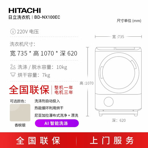 日立 65℃低温烘干洗烘一体机
