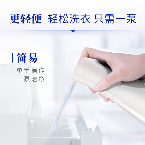 专为浓缩洗衣液设计的独创泵头,一次只需按压一泵,就能轻松清洗多件衣服,同时按压后泵嘴干净无残留,可避免液体滴落。