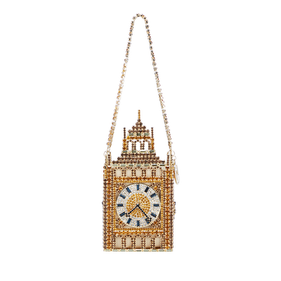 大本钟造型的外观设计,只需一眼就可以抓住人们的眼球,给人眼前一亮的感觉。包身镶嵌大量的仿真水晶,在灯光的照射下闪闪发光。