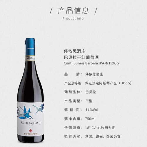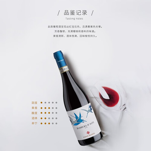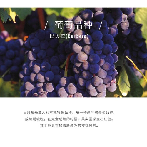 精选巴贝拉葡萄酿造,葡萄香味比较浓郁,酝酿出来的葡萄酒更加芳香。传统方式发酵,更能保留住葡萄原有口感,品质更佳。