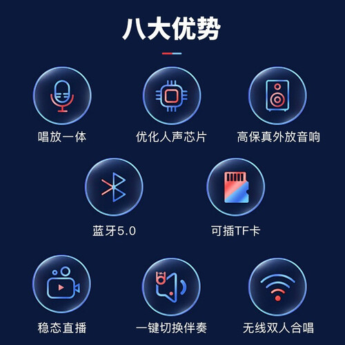 蓝牙音箱一体的设计,提升灵活操作,使用方便满足娱乐需要。内置人声优化芯片,可以提升音质辨析度,音色细腻。