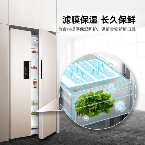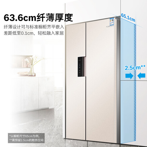 设计底部散热,侧面比传统冰箱节省多达16cm的预留空间,占地更小。铂金净风系统做到有效抗菌,守护食材健康。