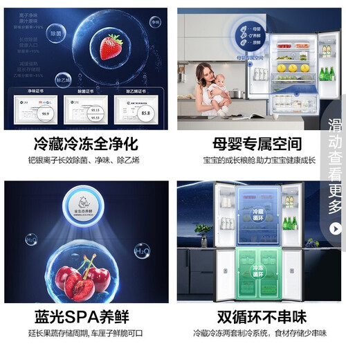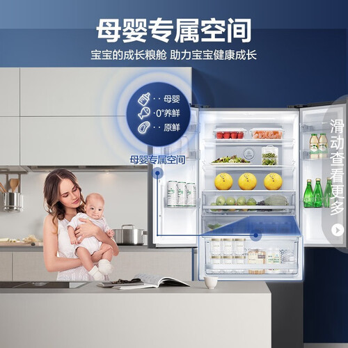 设计智能三挡母婴模式,便于储存母乳和辅食等婴幼儿食品,呵护宝宝健康。采用十字精储格局设计,容量更多,满足多样存储需求。