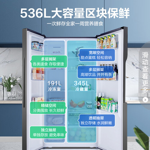 纤薄的机身,可自然融入橱柜,节省空间占地少;大容量的设计,可以科学的规划存储空间,根据食材分区存储,不串味,还更易保鲜。