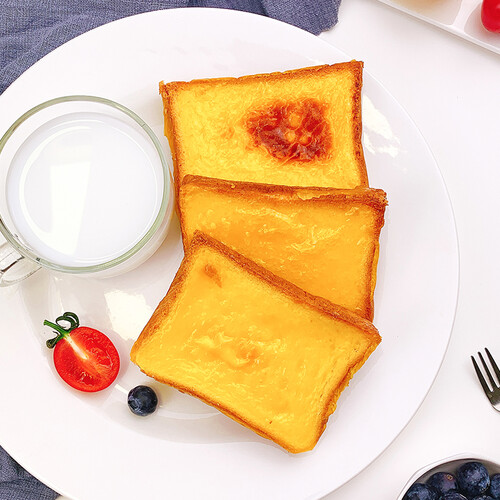 外皮金黄绵软,入口不粘不腻,有独具特色的清甜味道,搭配二次烘烤工艺,将奶酪酱刷在面包表皮上,增加厚重的芝香味道。