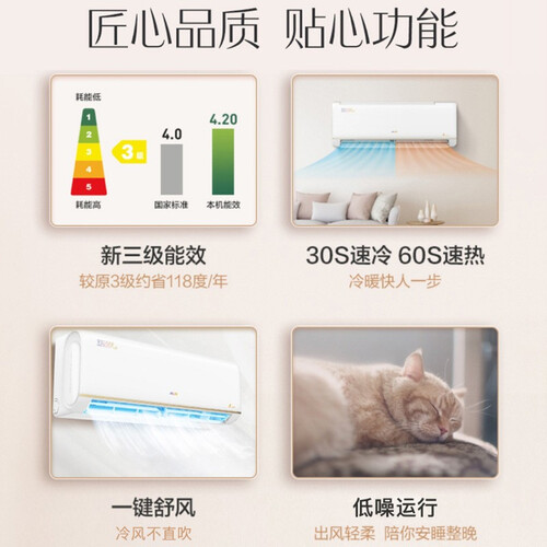 品质压缩机搭配高频速冷热技术,让屋内快速变暖没有冷空气。除湿模式,能让屋内空气更加清爽,没有细菌滋生。
