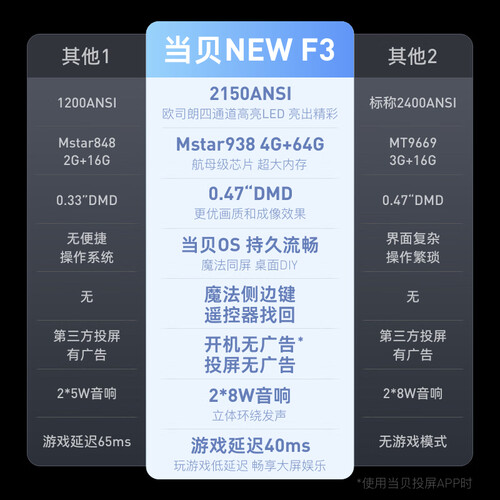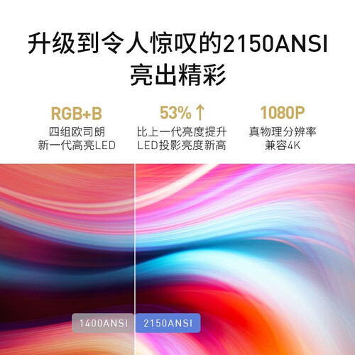 搭载强劲芯片运行更流畅,支持无感对焦使画面时刻方正,可远场语音操控使用更方便,采用2050ANSI高流明度使画面更清晰。