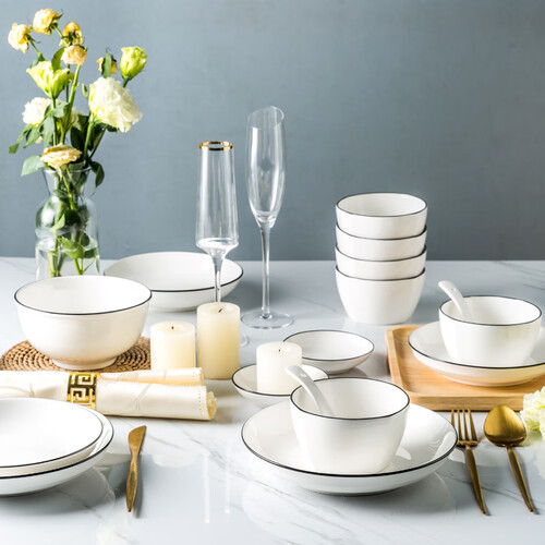 采用黑色的手工描边,彰显极简风格,兼具观赏性,更好的装点美食。拥有光滑的釉面,清洗简单,一冲即净。