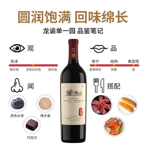 采用成熟的赤霞珠为酿酒的原料,酿制出的酒液更加高品质。入口感受酒液的醇厚和纯正,适合多种场合的饮用。