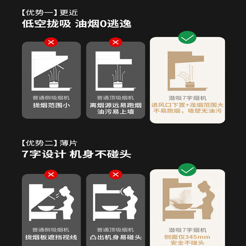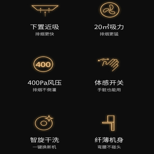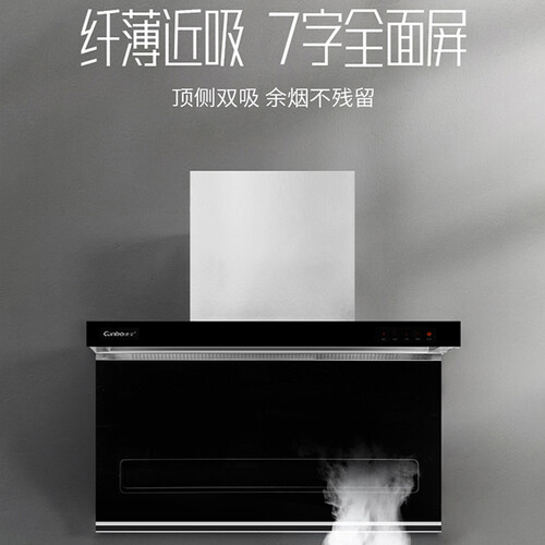 采用下置近吸设计,离油烟更近一步,排烟更加迅速,让厨房空气更加清新。采用7字全面屏设计,顶侧双吸,让油烟无处可逃。