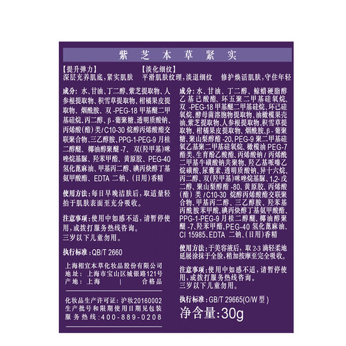 添加云南紫芝提取物,改善肌肤弹力,抚平细小干纹,皮肤饱满充盈。质地清爽,上脸舒适易吸收,肌肤0压力。