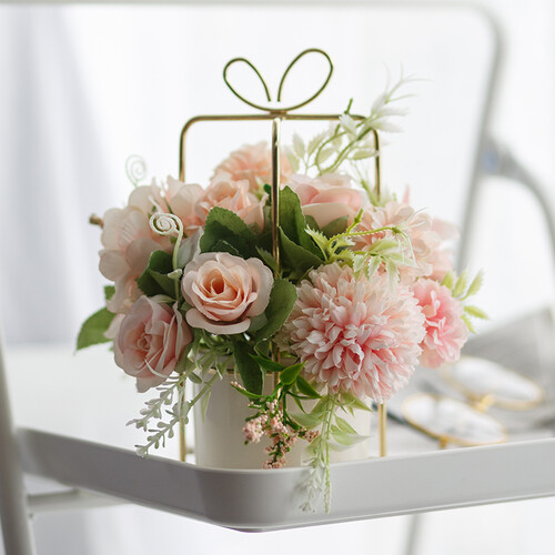 INS风格的一款花瓶花艺套装,玫瑰花采用高品质绢布材料,长久不易变形,搭配塑料花瓶,玫瑰大方,彰显简约文艺风。