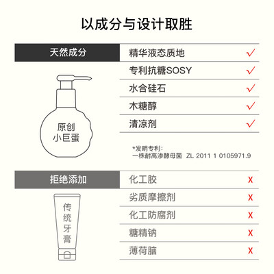 牙膏中蕴含精油,平衡脂肪酸,在牙齿表面形成保护膜。经典的泵头式,每次使用都方便,更节省用量。