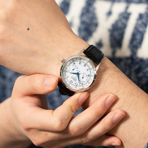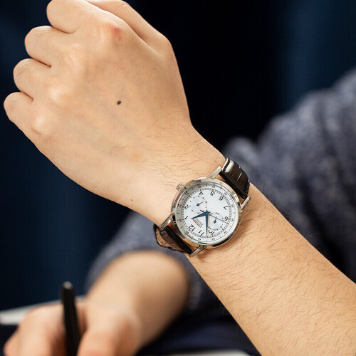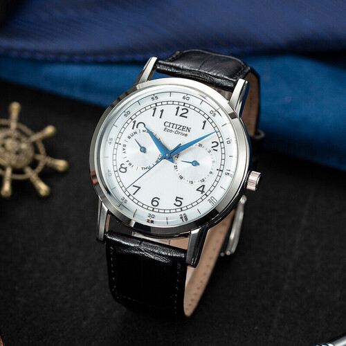 指针采用高颜值小蓝针设计,潮流时尚,选用光动能机芯,无需频繁更换电池,有光就有能量,走时安心,节能环保,佩戴彰显男士魅力。