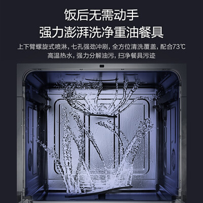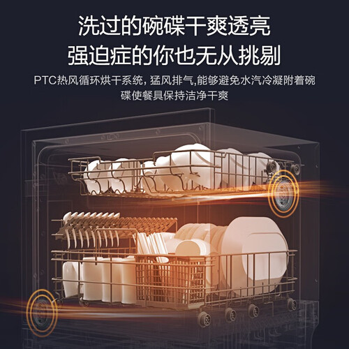 上下臂螺旋式喷淋,配合73℃高温热水,强力澎湃洗净重油餐具。PTC热风循环烘干系统,避免水汽冷凝附着碗碟,保持洁净干爽。