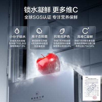 搭载离子态控水抑菌磁力鲜科技,通过小分子锁水实现果蔬保鲜,同时还能抑菌细菌滋生;流星纹无痕面板,高颜值展现厨房美学。