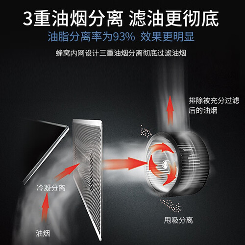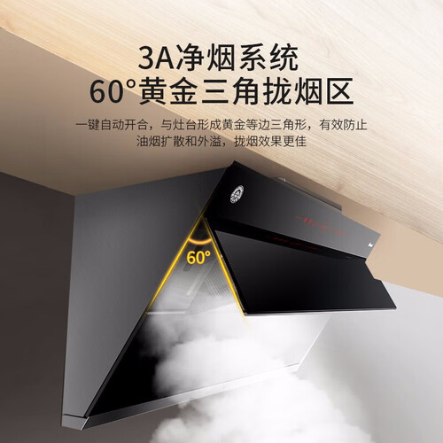 纯平钢化玻璃材质面板配合铝合金边框镶边,造型更显美观,适合现代家居。科学三角拢烟区设计,更好的聚拢油烟,避免扩散逃逸。