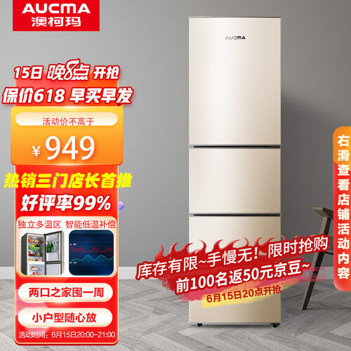 澳柯玛 206升小型三门冰箱