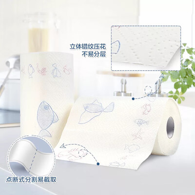 采用精良的错层压纹设计,提升了导流性能,吸水吸油更快捷。纸巾选用原生好材,成分天然纯粹,食品用也放心。