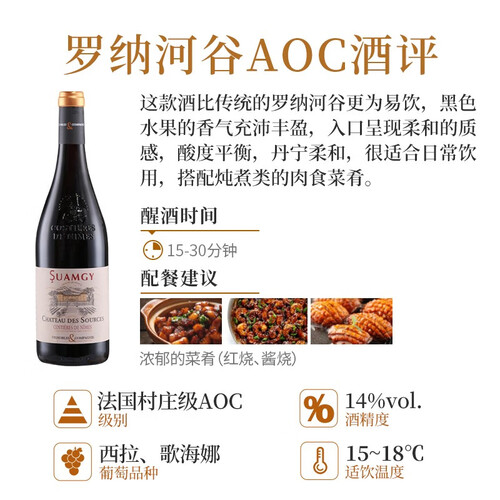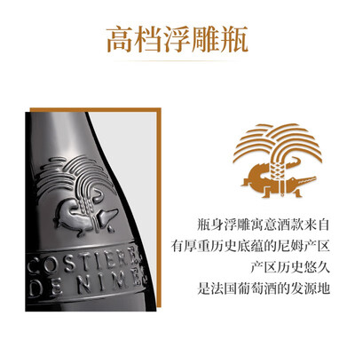 精选优质葡萄,日照和雨水充足,含糖量更高,酒香果香浓郁。重型瓶浮雕工艺,凹凸有质感,十分的美观耐看。