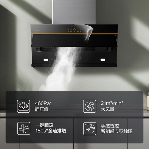 开机+开灯+风量调节,挥挥手就能一步搞定,无需繁琐步骤轻松开机排烟。900mm宽域隔烟屏,拒绝油烟上身上脸。