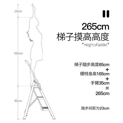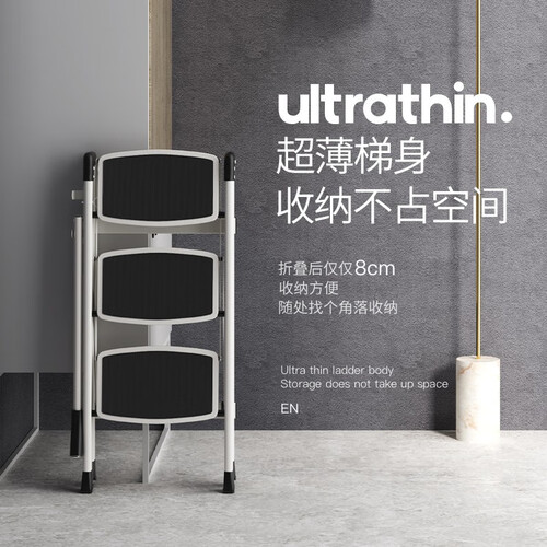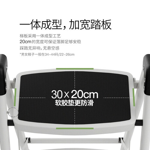 梯板采用一体成型的工艺,加宽踏板,更加安稳。超薄的梯身设计,收纳起来不占空间,使用很是方便。