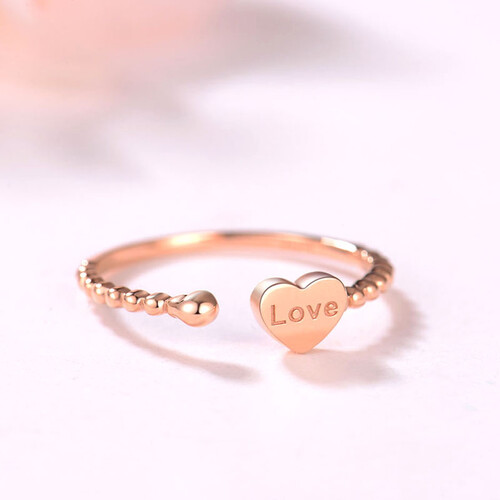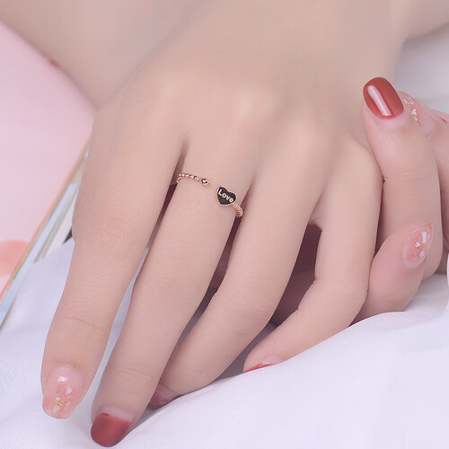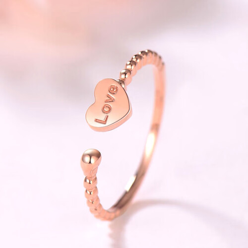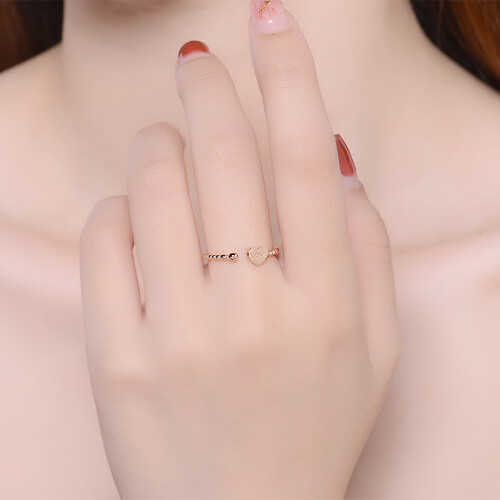 选用18K金的材质制作,硬度高柔韧性佳,长久佩戴不易变形。爱心形的戒身设计,潮流个性,有着很好地寓意。