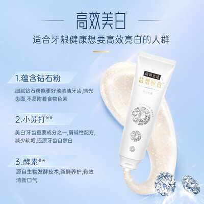 采用了小苏打成分,呈弱碱性,可以减少软垢的堆积,让牙齿显得更加白净。搭配生物发酵技术,清新口气。