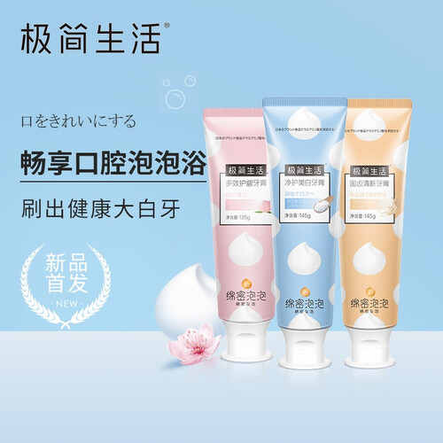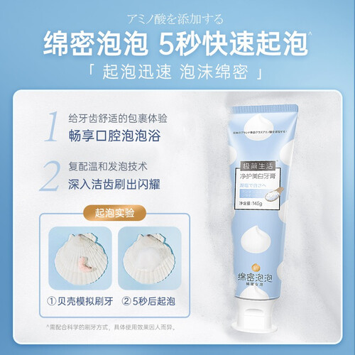 添加食品级氨基酸,温和清洁牙齿,不伤牙龈牙釉质。泡沫绵密丰富,舒适包裹牙齿,让你畅享口腔泡泡浴。