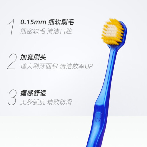 加宽的刷头,结合细密柔软双色刷丝,能实力刷走齿面牙垢同时,节省刷牙时间;同时符合人体工学刷柄,握感舒适。