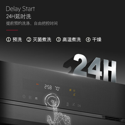 通过预设启动时间,进行定时清洗,想用的时候可随时使用。双层中式碗篮设计,可一次清洁多层餐具,进行轻松容纳。