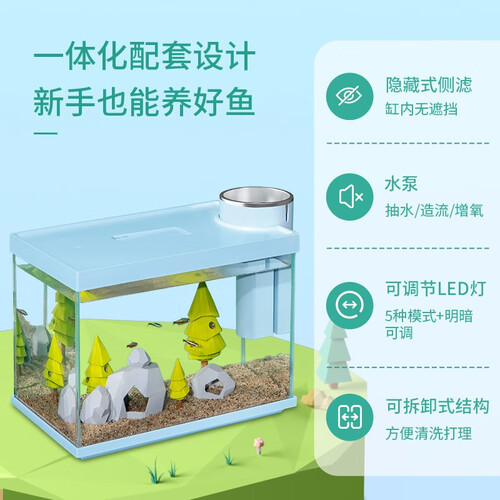 一体式配套设计,支持拆卸清洗,新手也能养好鱼。免换水设计,自循环过滤系统,水族箱内长久保持干净清澈,非常适合懒人。