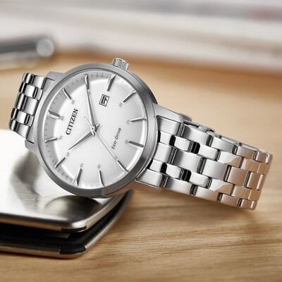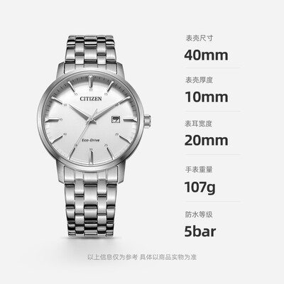 搭载了光动能机芯,有光源就能驱动,续航更加长久,采用白色表盘和钢带,外形简约纯粹,展现沉稳干练的气质。