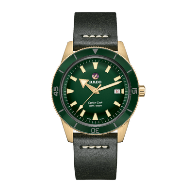 这款库克船长系列手表采用生机勃勃的绿色表盘,表盘内缀有船锚图案,增添时尚活力感。蓝宝石玻璃表镜,通透抗刮且坚硬耐磨。