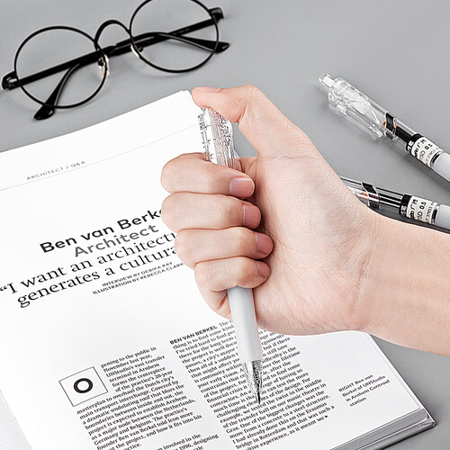 内置铝制弹簧,按动式的出芯方式,可以在不使用时将笔头收进笔壳中,防止笔头受到磨损。带有橡胶笔握,为你带来柔软的握感。